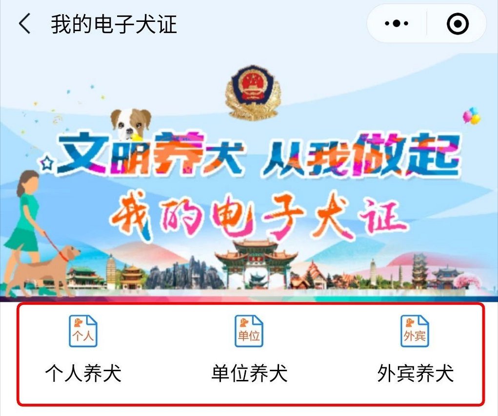 1、進(jìn)入官網(wǎng),根據(jù)已辦理的電子犬證類型,調(diào)出電子犬證頁面,按已辦理犬證類型選擇對應(yīng)“個人養(yǎng)犬”、“單位養(yǎng)犬”或“外賓養(yǎng)犬”。