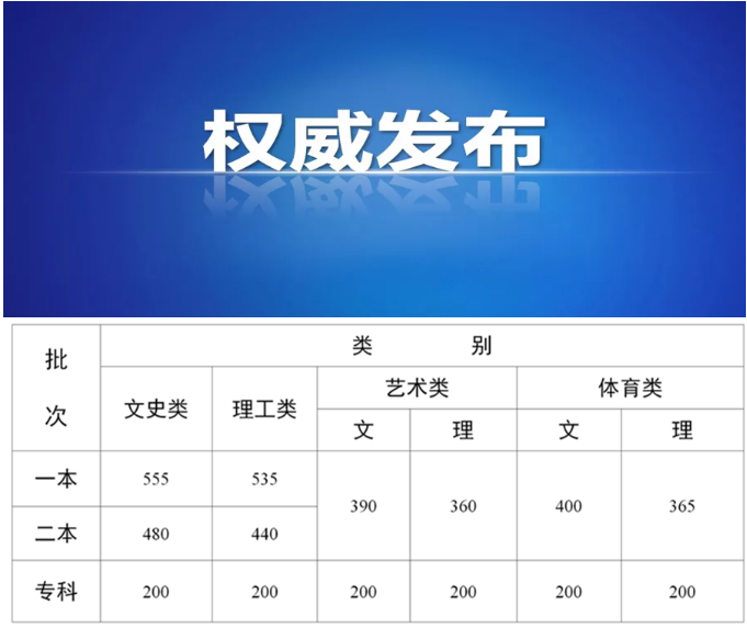 云南省2020年普通高校招生錄取最低控制分?jǐn)?shù)線
