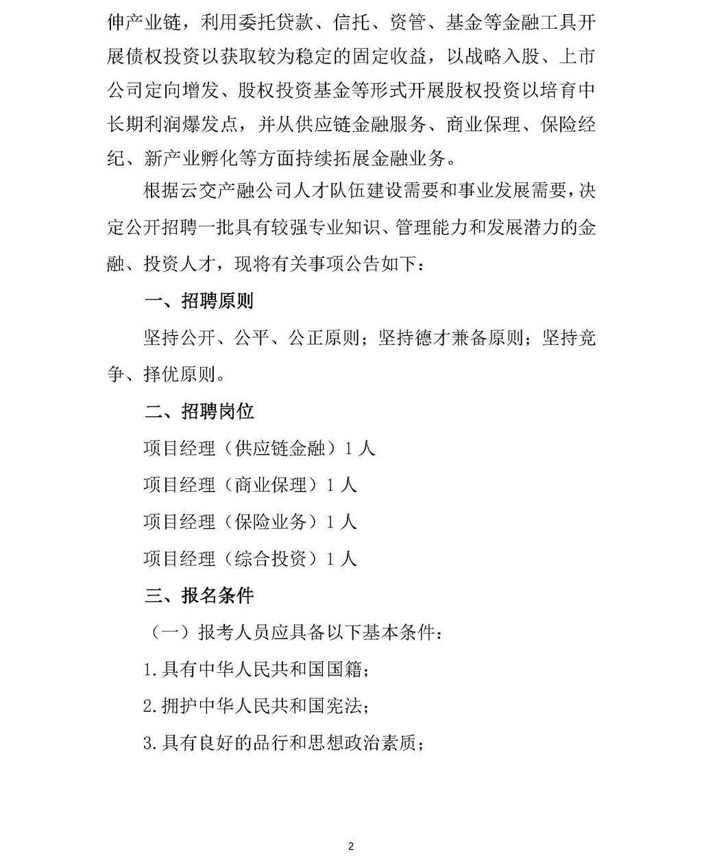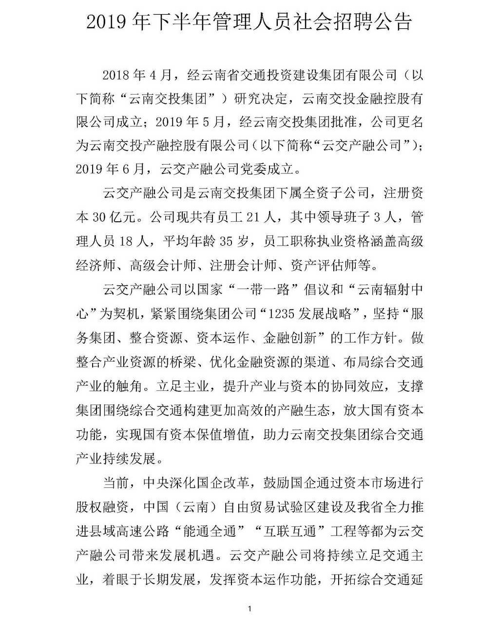 云南交投產(chǎn)融控股有限公司2019年下半年管理人員社會(huì)招聘公告