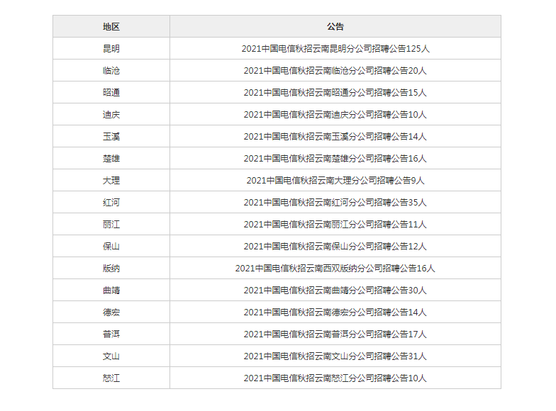 用人單位(州市分公司)中國電信昆明分公司及省公司本部,工作地點(diǎn)(具體到縣分公司)昆明分公司