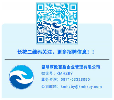 本公告招聘流程順序根據(jù)實際工作調(diào)整,由昆明厚致百盈企業(yè)管理有限公司負責解釋。