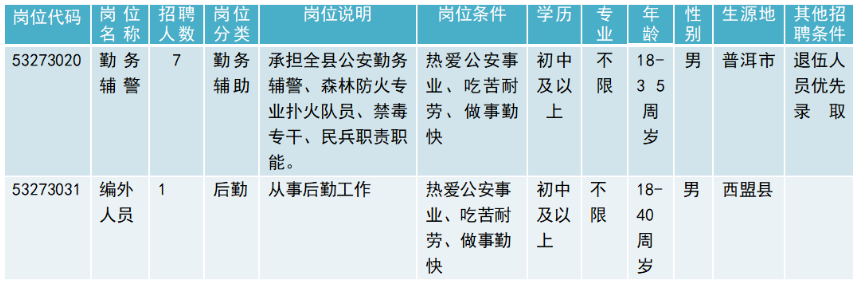 普洱市西盟縣公安局2020年度公開招聘勤務(wù)輔警、編外人員公告