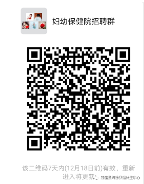 (三)請各位報(bào)考人員掃碼加入“婦幼保健院招聘群”下載招聘報(bào)名表: