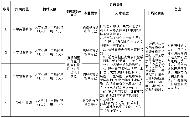 昆明滇池中學(xué)2021年人才引進(jìn)、招聘市場(chǎng)化聘用教師公告