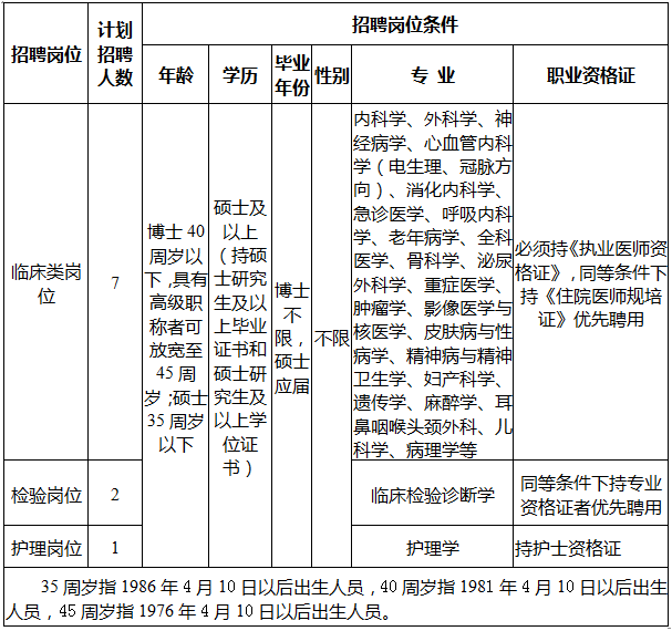 說明:1.4月10日招聘未滿的兒童醫(yī)學中心崗位、麻醉科崗位、婦產生殖醫(yī)學崗位、精神心理科崗位、皮膚科崗位、超聲醫(yī)學科崗位、病理科崗位,調整為臨床類崗位統(tǒng)一招聘。