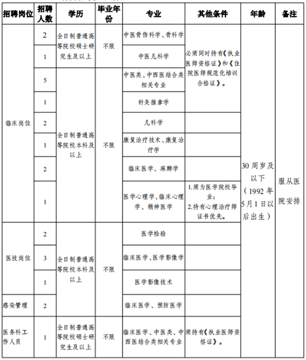 為進一步加強人才隊伍建設,促進醫(yī)院科學發(fā)展,根據(jù)我院業(yè)務發(fā)展需要,計劃招聘以下崗位人員。