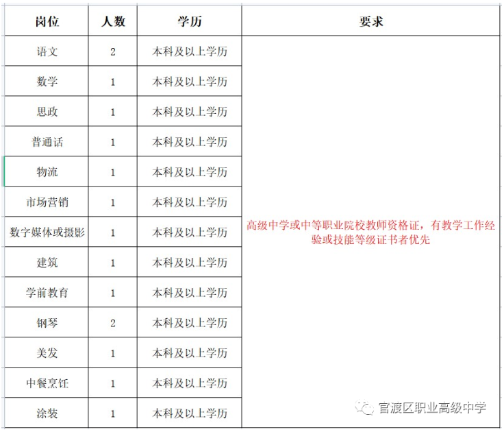 昆明市官渡區(qū)職業(yè)高級中學(xué)2022年度秋季教師招聘公告