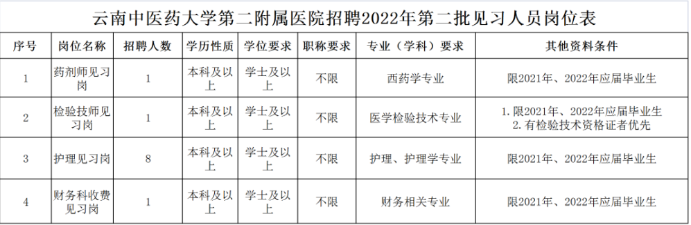 云南中醫(yī)藥大學(xué)第二附屬醫(yī)院招聘2022年第二批見習(xí)人員通知