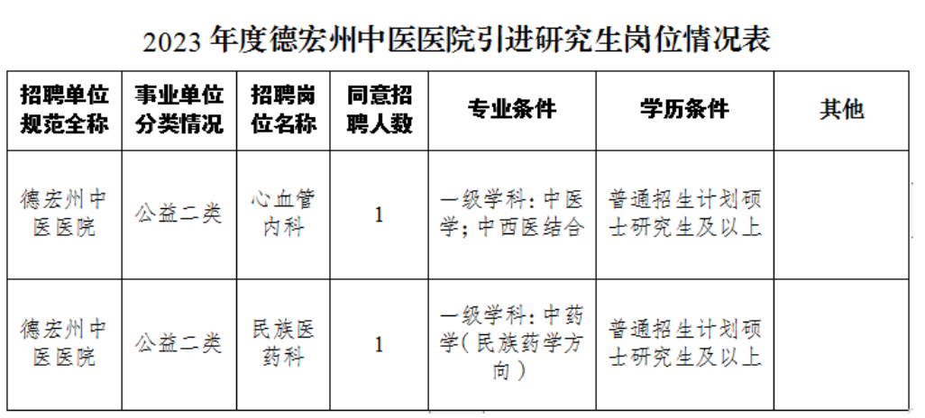 德宏州中醫(yī)醫(yī)院2023年公開引進研究生公告