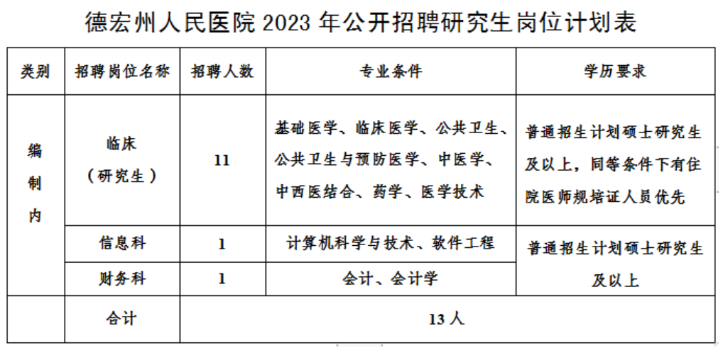 德宏州人民醫(yī)院2023年公開招聘研究生公告