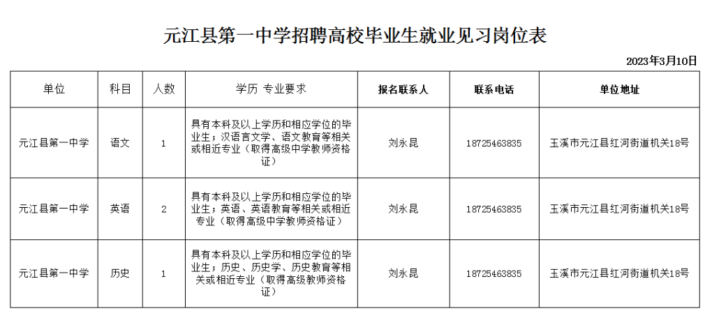 玉溪市元江縣第一中學(xué)招聘就業(yè)見習(xí)人員公告