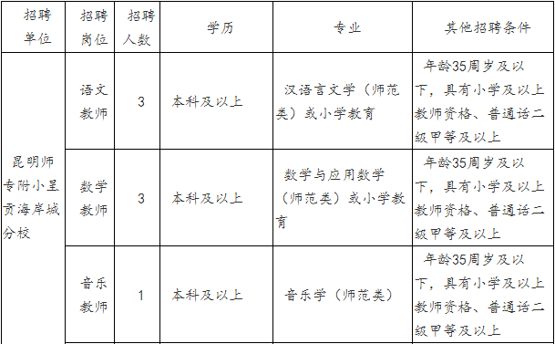 昆明師專附小呈貢海岸城分校2019年教師招聘公告