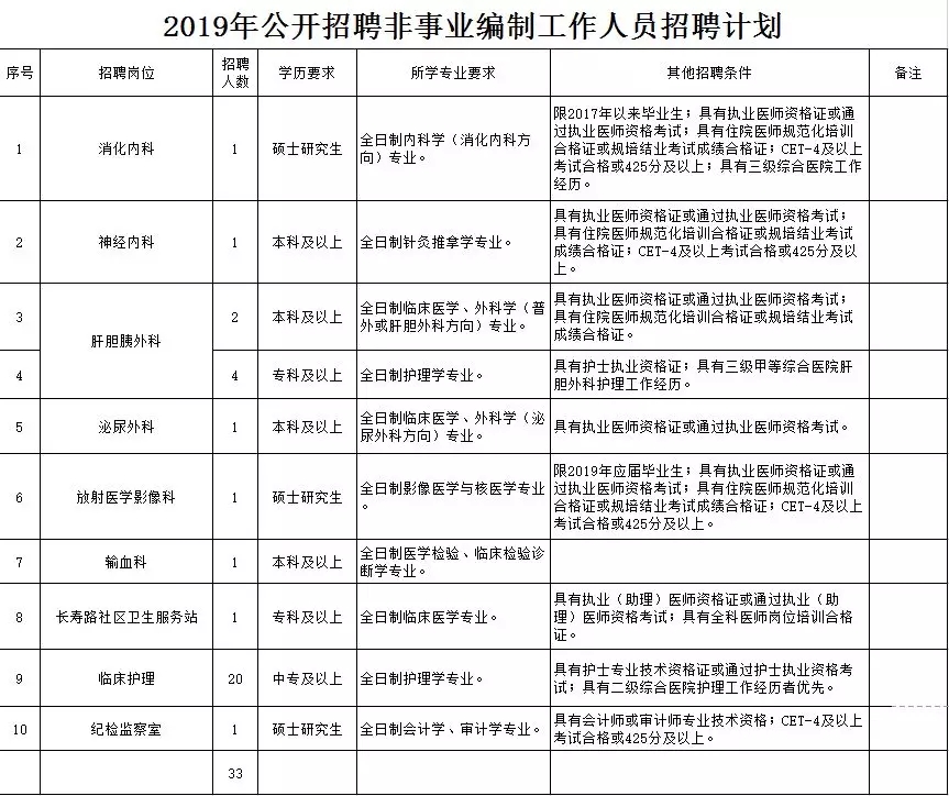根據(jù)醫(yī)院工作需要,經(jīng)研究決定,2019年云南省第三人民醫(yī)院面向社會公開招聘非事業(yè)編制工作人員33人,現(xiàn)將有關招聘事宜公告如下: