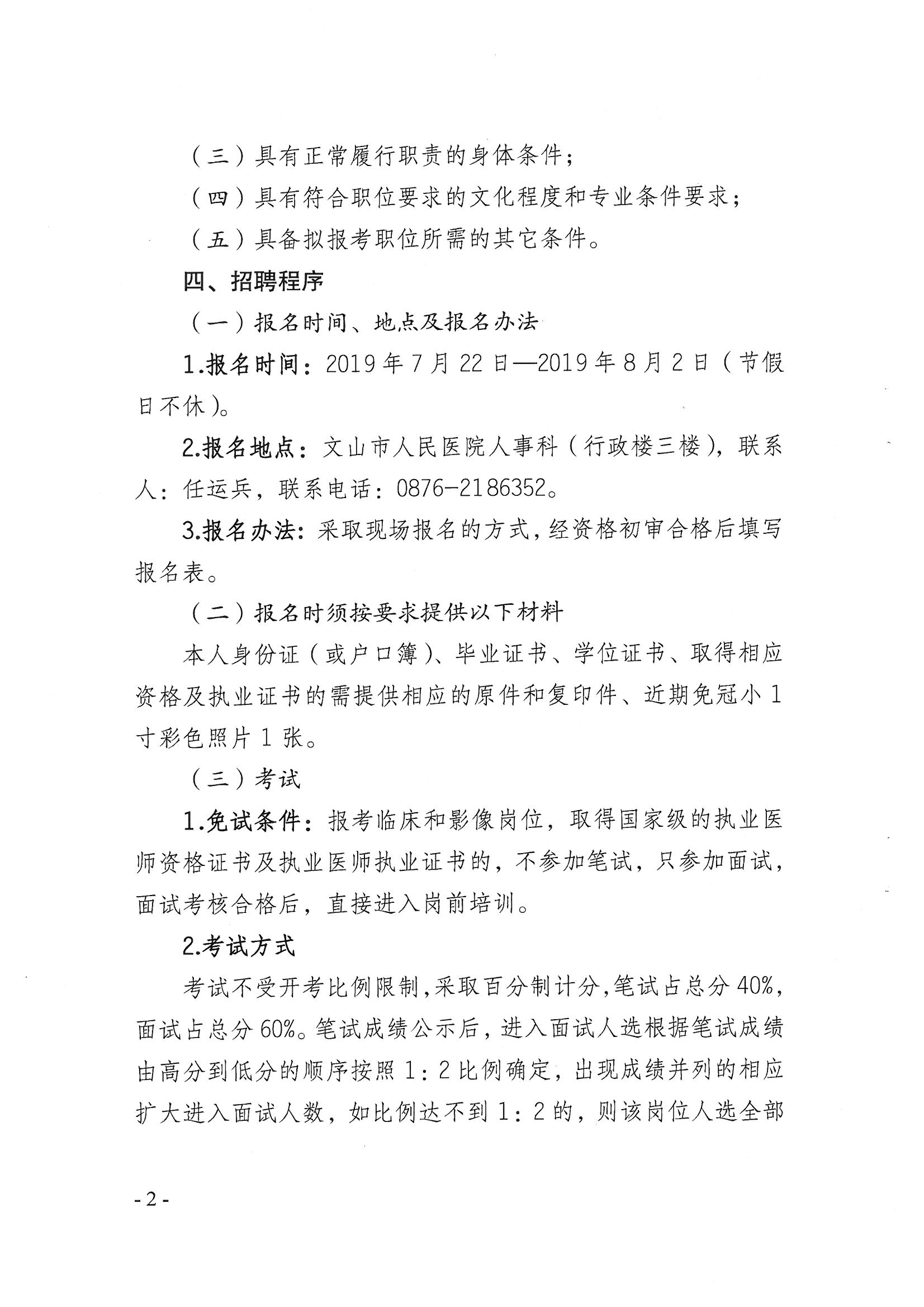 文山市人民醫(yī)院2019年公開招聘一批編外人員的公告
