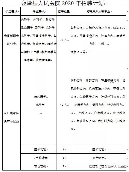 (二)會(huì)澤縣人民醫(yī)院2020年編外人員招聘計(jì)劃及相關(guān)要求