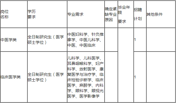 (二)市婦幼保健院。引進崗位2個,其中中醫(yī)學(xué)類1個,臨床醫(yī)學(xué)類1個。
