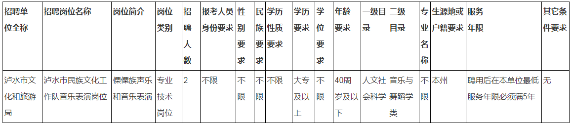 瀘水市人力資源和社會保障局關(guān)于2020年特招特聘瀘水市民族文化工作隊工作人員公告