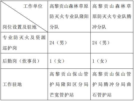 現(xiàn)因工作需要,云南騰森人力資源服務(wù)有限責(zé)任公司面向社會公開招聘高黎貢山森林草原專業(yè)防滅火隊員,派遣到高黎貢山自然保護區(qū)保山管護局森林草原防滅火專業(yè)隊工作,現(xiàn)將招聘事宜公告如下: