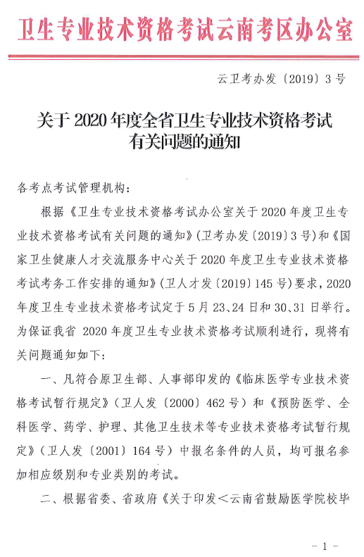關(guān)于2020年度我省衛(wèi)生專業(yè)技術(shù)資格考試有關(guān)問(wèn)題的通知